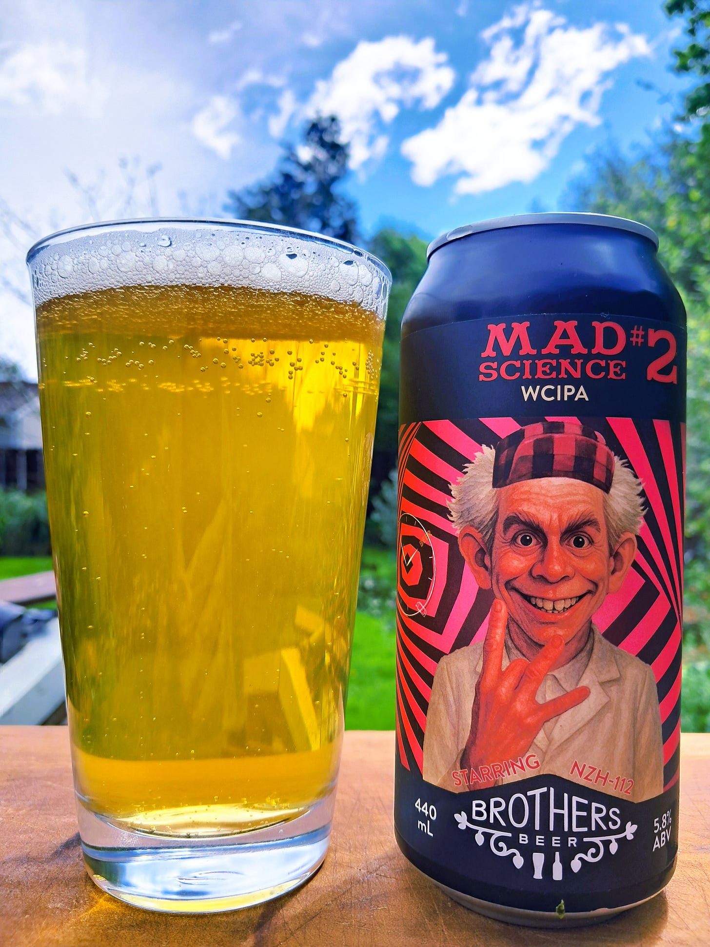 Mt Eden’s Brothers Beer invites us to taste the future with their new trial hopped IPA, Mad Science #2. This is among the first generation of commercially released beers to use the latest clutch of trial hops (NZH-111, NZH-112 and NZH-115) from the NZ Hops Ltd’s Bract Brewing Program. This release features NZH-112, with a little bit of Motueka in support. It delivers Bright key lime candy, fresh pineapple and gentle pine with just a hint of cinnamon and clove. Light bodied and refreshing on the palate, with a mild bitterness and longer finish where the clove makes a curious reappearance. Undeniably smashable IPA at a (slightly) lower 5.8%abv, just don’t linger on the unsettling can art… — Tim Newman, chief reviewer for Pursuit of Hoppiness magazine.