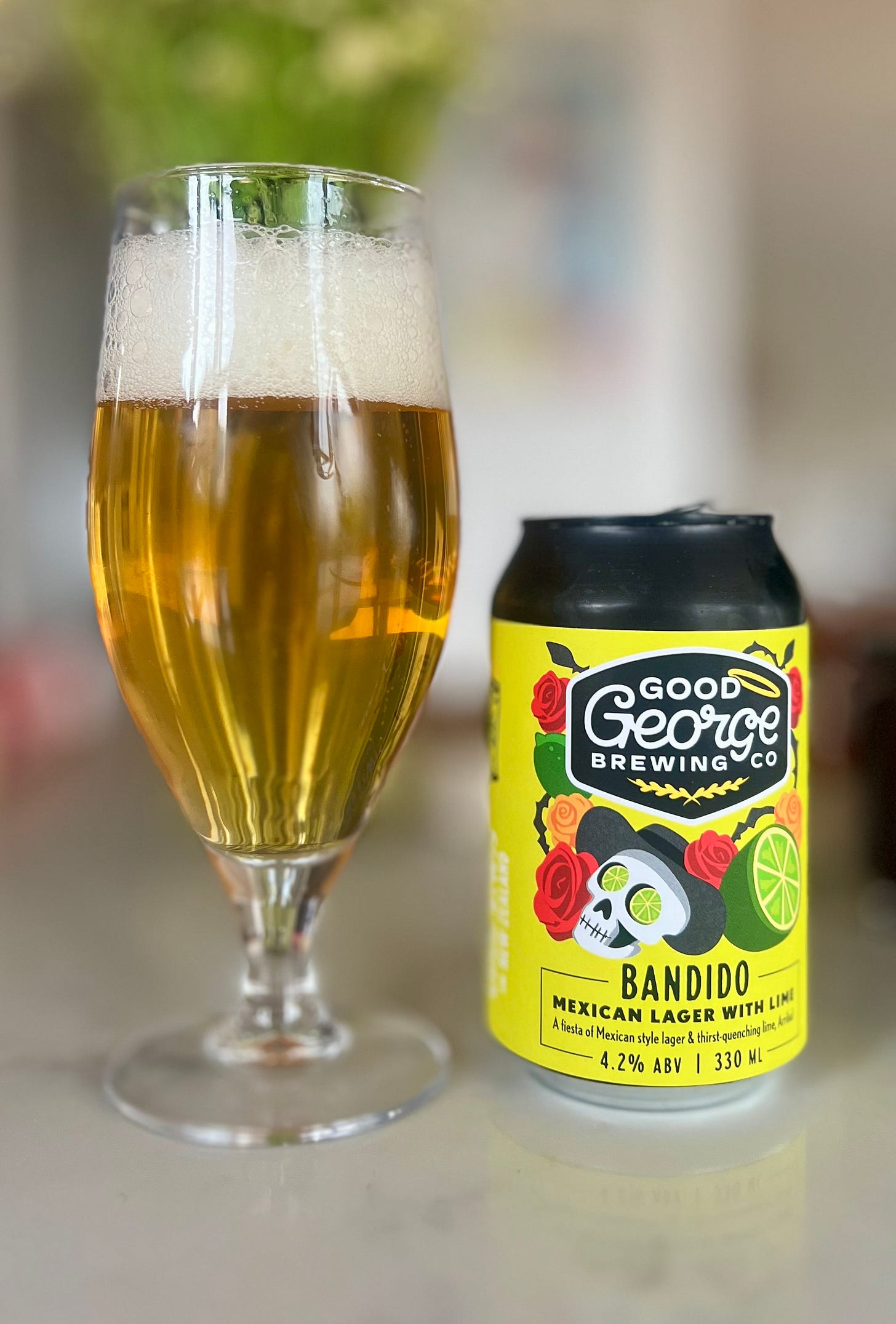Good George Bandido — a Mexican lager with lime — riffs off a certain ubiquitous clear-bottled lager stuffed with a lime wedge.